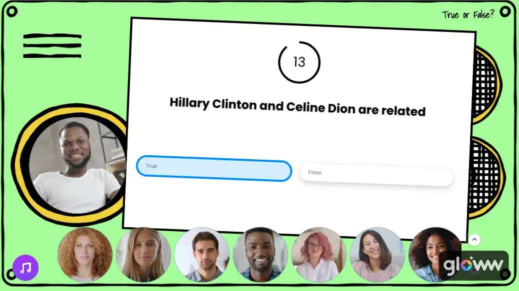 Engage: During the live session, participants will answer multiple-choice questions, buzz in for quick responses, and use the scribble tool to draw lines connecting songs to their artists. Play short music snippets and have participants buzz in with the correct song title.